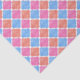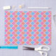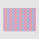 Ornately patterned diamond checked tissue paper in orange, pink and blue.