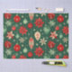 Ornements de Noël et fleurs dans un motif de vacances festif aux couleurs vert, rouge et crème