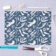 Os de dinosaure bleus et blancs répétant le motif ! Les dinosaures décrits dans cette conception incluent : Tyrannosaurus Rex, Allosaurus, Parasaurolophus, Triceratops, Brachiosaurus, Spinosaurus, et Velociraptor.