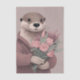 Une jolie loutre générée par l'IA tenant un bouquet de fleurs