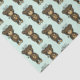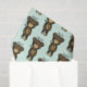 Papier de tissus avec une simple illustration d'un ours brun caricaturé tenant une marguerite jaune. Bonjour écrit au-dessus de sa tête. Placé sur un arrière - plan vert pâle.