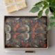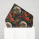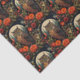Tissue paper with a cool looking owl with a piercing stare. A full moon in the back with a garden of red flowers.
