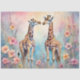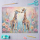 Papier Mousseline Paire de girafes en amour dans un jardin pastel