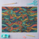 C'est un motif de cachemire coloré qui donne l'impression d'être tissé à partir de nombreux fils de laine. La palette de couleurs se compose de quatre couleurs distinctes et vives : jaune, turquoise, bleu foncé et orange. L'utilisation du jaune ajoute un élément ensoleillé et joyeux au design, évoquant des sentiments de chaleur et de bonheur. Le turquoise, avec ses propriétés cool et apaisantes, contraste magnifiquement avec le jaune, créant un effet visuel équilibré et harmonieux. Le bleu foncé introduit la profondeur et la richesse au motif, l'ancrant et fournissant un sentiment de stabilité. L'ajout d'orange est un choix audacieux, qui insuffle énergie et vitalité dans le design. Il sert de couleur d'accent frappante, attirant l'attention sur des éléments spécifiques dans le motif cachemire. Dans l'ensemble, ce design est un mélange de couleurs et de motif délicieux, dégageant une ambiance animée et ludique tout en maintenant un sentiment de sophistication et de chaleur. Il est parfait pour ajouter une touche de fantaisie et de créativité à divers produits et décors, des textiles à la mode, en passant par la décoration intérieure et les oeuvres d'art.