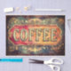 Papier Mousseline Panneau Étiquette café de style antique DQ1F Décou