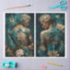 Ce papier de tissu découpage présente un magnifique appariement d'un homme et d'une femme tatoués, tous enveloppés dans un majestueux dragon turquoise et doré avec des pivoines luxuriantes et des fleurs métalliques. Conçue côte à côte, cette petite feuille offre deux images focales puissantes en une, idéales pour les journaux à puces, les plateaux, les petits meubles et les panneaux d'artisanat de relevés. Faisant partie de la série d'imaginaires d'art corporel Hautegraphique, cette pièce allie force masculine et élégance féminine dans un chef-d'oeuvre mythique prêt à élever votre vision créative. Copyright Hautegraphique
