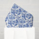 Ce papier tissulaire présente un design floral bleu et blanc.