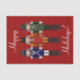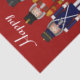 Christmas Nutcracker Trio - Trois Nutcrackers debout côte à côte sur un arrière - plan rouge solide. Le premier casse-noix est habillé de bleu et de blanc avec des ornements dorés. Le biscuit central est habillé de rouge et d'or avec des ornements dorés. Le troisième casse-noix est habillé en vert et blanc avec des ornements en argent. Chacun de ces noix de cou est disponible séparément sur des cadeaux et des produits Zazzle assortis. Deux zones de texte sont en place pour que vous puissiez personnaliser avec. Modifiez le texte pour dire ce que vous voulez. Supprimez ou effacez les zones de texte que vous ne souhaitez pas. Ce design est disponible avec des couleurs arrière - plans assorties.