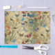 Papillons botaniques vintages, oiseaux et fleurs aux couleurs rouge, orange, bleu, vert, rose, noir et marron sur un motif damassé élégant de couleur or. Idéal pour l'artisanat du papier, le découpage et les cadeaux d'emballage. Conçu par © Tim Coffey.
