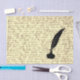 Papier cadeau en tissu avec l'image de l'écriture antique et plume et encre.