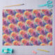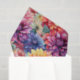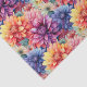 Ce papier tissulaire présente des fleurs de dahlia dans les tons rose, bleu, jaune, vert et magenta