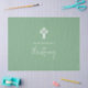 Sage papier de tissu vert avec une croix florale blanche pour baptême ou baptême. Personnalisez avec le nom de votre bébé et changez le baptême en baptême si vous préférez. Une partie de la collection Floral Cross Christening.