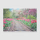 La photographie à thème pittoresque Spring présente un chemin de jardin bordé de belles tulipes roses avec des arbres à fleurs rose, vert et blanc au loin. Parfait pour l'emballage cadeau ou le découpage
