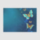 Papier Mousseline Papillons d'or sur un Arrière - plan bleu