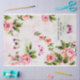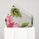 Beau papier de tissu de découpage avec des papillons assortis et des fleurs avec le texte qui dit : matin par matin de nouvelles miséricordes je vois. Les couleurs dominantes sont le rose, l'orange et le vert.