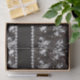 (Faux de relief) motif argenté moderne et à la mode de parties scintillantes de noir de fleur de lis (PARTIES SCINTILLANTES NON VRAIES de FAUX) et beaux diamants noirs bling (diamants non vrais) avec les coeurs de fantaisie et la rayure de points personnalisée avec vos cadeaux nommés ou cadeaux de monogramme ou vos initiales. Idées Girly de cadeau de parties scintillantes. Si vous frappez la personnaliser il bouton vous pouvez changer la couleur et le type de police.