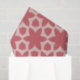La motif est dotée d'un design symétrique et répétitif avec un motif floral audacieux. Il se compose de formes en deux couleurs principales : un rouge corail profond et un arrière - plan rose pâle. L'élément central est une grande fleur stylisée avec six pétales en rouge corail. Cette fleur est entourée de formes géométriques supplémentaires, dont des formes pétales et polygonales, créant un design équilibré et harmonieux. L'arrière - plan rose pâle offre un contraste doux, faisant ressortir les formes rouge corail.