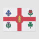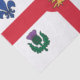 The flag of Montreal proudly displayed on this tissue paper features a red cross on a white background, symbolizing the city's Christian heritage and unity. In each quadrant, a distinct floral emblem honors the major founding cultures of Montreal: the fleur-de-lis for the French, the rose for the English, the thistle for the Scots, and the shamrock for the Irish. At the heart of the design lies a red maple leaf — a powerful symbol of Canada as a whole — representing national identity and unity. The arrangement conveys Montreal’s enduring diversity, cultural strength, and historical legacy.