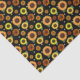 Ce design botanique rustique coloré, élégant et attrayant présente un motif de tournesols jaunes, orange, dorés et rouille, entrecoupés de pois blancs sur un arrière - plan noir à contraste élevé, parfait pour de nombreuses occasions différentes.