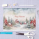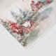 Il s'agit du troisième de trois feuillets similaires de papier de tissu qui ont des images d'aquarelle vintages de maisons de campagne dans un cadre de pins rouges et verts. Ici, nous voyons un joli cadre de plusieurs maisons rustiques aux reflets rouges dans le quartier rural, entre décorations et couleurs de Noël. Le charme du cadre enneigé remarqué sous le ciel hivernal. Si vous le souhaitez, vous pouvez modifier le script rouge "Joyeux Noël" qui s'adresse à un autre texte.