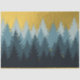 Une belle décoration mettant en valeur les arbres dans une forêt et un ciel doré. Les tons de couleur sont bleu neutre et or. Un design rustique idéal pour l'automne, l'automne, le décor de maison d'hiver et la saison des fêtes.