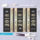 Ajoutez une touche personnelle à votre cadeau avec cet élégant papier de tissu noir et or avec de l'or "2018" et "Félicitations" ajoutez le nom de votre famille.