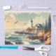 Enveloppez vos cadeaux ou élevez vos projets d'artisanat avec ce papier de tissu de style vintage qui présente une scène d'aquarelle d'un phare perché sur des rivages rocheux, entouré de vagues océaniques. Parfait pour l'emballage cadeau sur le thème nautique, la découpage côtière ou l'emballage boutique. Ce design a été créé à l'aide de l'art de l'aquarelle généré par l'IA, alliant tradition et créativité moderne.