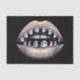 Une pièce étonnante qui combine surréalisme pop art et élégance mystique. Cette oeuvre présente une paire de lèvres mortes à peine partées et brillantes, ornées d'une séquence horizontale de phases de lune.