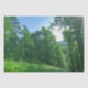 Photographie du paysage forestier. Paysage paisible et verdoyant de la forêt en juin avec végétation verte, arbres verts et soleil matinal.