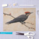 Pic pilé assis sur une branche d'arbre. OEuvre d'art réaliste créée à partir d'une peinture à l'huile originale de l'artiste faunique Crista Forest.