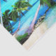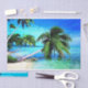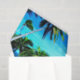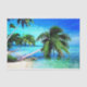 Les eaux tropicales bleues peu profondes, plage sablonneuse blanche, pleines paumes vertes luxuriantes sur un paradis tropical d'île.