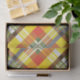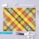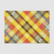 Un plaid moderne et une conception tartan-inspirée de contrôle de Nick Rumbelow, dans les bandes de jaune, orange et rouge, avec les détails de vert, blancs et bruns.
