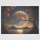 Papier Mousseline Pleine lune avec arbre à feuilles oranges Découpag