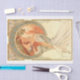 Poésie d'Alphonse Mucha. Les couleurs pâles sont sobres et naturelles. La femme, belle, aux cheveux longs et flottants, est entourée de fleurs ornées. Elle est la personnification de la poésie. Sa robe flottante est peinte dans les tons bleu pâle et vert qui rappellent le ciel et la terre. Elle repose sur l'arrière - plan dorée qui se marie avec ses cheveux longs et dorés. La femme regarde la campagne, la tête couronnée d'une branche de laurier, symbole de poésie et de divination. Elle semble être dans la contemplation en regardant le paysage, presque comme si elle était assise sur une balançoire au-dessus de la Terre. Pensif, et sentiment, comme la muse regarde toute l'activité ci-dessous, inspirant les poètes qui nous apportent leurs mots.