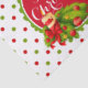 Le design est composé d'un cercle rouge avec cadre vert et décorations de Noël sur un arrière - plan de pois aux couleurs de Noël.