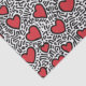 Ce motif vibrant présente des coeurs rouges et audacieux éparpillés sur un arrière - plan blanc rempli de doodles noirs dynamiques. Le design ludique, qui rappelle l'art pop, utilise des lignes fortes et des formes fantaisistes pour créer un visuel vivant et énergique. La juxtaposition de coeurs rouges vifs et de traits noirs abstraits évoque un sentiment d'amour et de spontanéité.