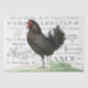Un poulet noir se dresse sur une jambe sur un molleton herbacé avec un collage des noms et adresses des villes françaises dans l'arrière - plan. Idéal pour le découpage.
