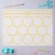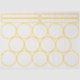 Des bordures jaunes minces encadrent quatorze toppers ronds de pots de miel utilisant la plus grande taille de papier de tissu (20" x 30") imprimée avec un motif de queen bees. Utilisez le modèle circulaire comme guide pour réaliser des coutures de 6 po de large pour tenir une grande bouche et des jarres de maçon régulières. Quatre bandes de correspondance peuvent être utilisées sur les côtés supérieurs et inférieurs des conteneurs.
