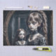 Cette oeuvre d'art effrayante dépeint une scène étrangement inquiétante où une jeune fille se tient devant un miroir, berçant une poupée spectrale dans ses bras. La réflexion dans le miroir révèle une juxtaposition inquiétante d'innocence et de crainte. Le regard de la fille est troublant, rempli d’un calme inquiétant qui contraste fortement avec la présence fantomatique de la poupée. La scène est enveloppée de tons sombres et de détails subtils et étranges qui accentuent le sentiment de malaise. Le miroir, qui sert de portail vers un royaume de mystère troublant, saisit un moment de calme obsédant où la frontière entre la réalité et le surnaturel se brouille.