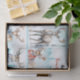 Ce papier de tissu fantaisiste et personnalisé présente votre message et votre nom personnalisés en haut à gauche avec un joli tableau de profils de rennes de Noël, tous ornés de décorations de Noël et de foulards d'hiver. Chaque panneau est séparé par un cadre aqua, avec une subtile montagne et des arbres aquarelle regarder derrière une partie de l'image. La plupart des images de rennes ne sont que leurs bois et leurs visages mignons, et dans certains foulards et rubans coque, avec un dollar plein. Ce papier hivernal et magique est parfait pour l'artisanat de découpage de Noël ou pour accompagner votre emballage cadeau. Assurez-vous de taper votre nom et de modifier le message Joyeux Fêtes si vous le souhaitez, dans la section Personnalisée. Notez que différentes quantités du cadre bleu turquoise apparaissent sur différentes tailles de papier tissulaire - se référer à l'image miniature.