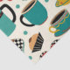 Revenez en arrière avec Retro Diner Brew : 1950 Coffee-Theme Tissue Paper. Ce design ludique apporte le charme des classiques américains avec des tasses à café rétro, des soucoupes et des pots en gras rouge, turquoise et jaune. La motif en à damiers noir et blanc ajoute une touche nostalgique au dîner, ce qui en fait un enveloppement amusant et coloré pour les amateurs de rétro et de café.