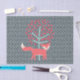 Rétros articles de conception de Fox pour la maison, le bureau, et l'utilisation personnelle comprenant les conseils secs d'effacement, les coussins, les portefeuilles, les plateaux de haut-parleurs, de servir, les boutons, les cartes, les autocollants, les porte - clés, les boîtes-cadeau et les sacs, les faveurs de sucrerie, les plaques à papier et le magnet, les sacs, les cas d'appareil électronique et les douilles, et tellement plus, tous avec une conception mignonne et colorée des globes bleu-clair de roche sur bleu-foncé, un arbre bleu-clair avec le feuille rouge de boule, et un renard rouge adorable !