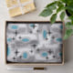 Retro Mid Century Moderne Cosmique Abstrait Motif Noir gris blanc & bleu..