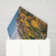 Papier de tissus avec une photo pittoresque représentant des montagnes couvertes d'arbres aux couleurs de l'automne. Une rivière animée s'écoule autour d'une multitude de rochers. Une grande pleine lune blanche plane au-dessus.