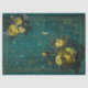 Arrière - plan turquoise profond couvert d'étoiles brillantes et d'une lune croissant encadrée par un bouquet de roses jaunes.