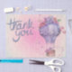 couleur rose clair avec ballon aérien bleu et fleurs papier mouchoir Merci