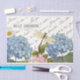 Cette lettre manuscrite fut échangée entre deux vieux amis en 1833 et décrit les merveilles de la campagne et la joie de la moisson. De belles hydrangées vintages bleues et roses, une marguerite blanche et une libellule complètent la scène. "Belle jardinière" signifie beau jardinier en français.
