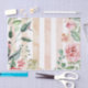 Cet élégant papier découpage floral présente un motif à rayures verticales épais et doux dans les tons rose vif avec des roses de couleur rose et de beaux accents botaniques feuillus. Un joli design pour votre projet de découpage ou papier de tissu pour un cadeau mariage, un cadeau d'anniversaire, un cadeau d'anniversaire ou une occasion spéciale.