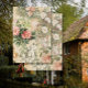 Image 4. Elégant design vintage botanique victorien vertical, avec partition musicale, écriture manuscrite de calligraphie, éphémère publicitaire française, verdure feuillue et arrière - plan de parchemin vieilli. Ce collage fait partie d'une série d'images de coordination, parfaites pour l'utilisation sur des meubles peints, des portes d'armoires ou pour créer de l'artisanat mural sophistiqué. Il a été dessiné sous forme graphique par Audrey Jeanne Roberts, artiste et designer de renommée internationale, copyright.