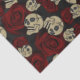 Papier Mousseline Roses Rouges & Crânes Floral Gris Noir Gothique